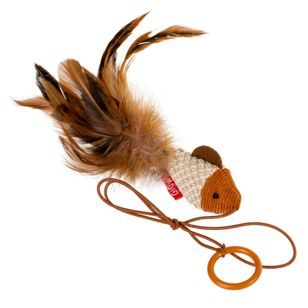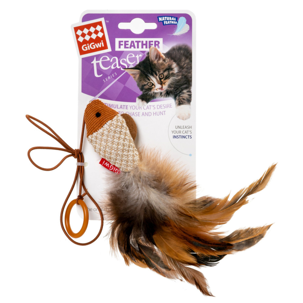 Головною особливістю цієї моделі є продумана ергономіка: іграшка оснащена міцним пластиковим кільцем, яке зручно надягається на палець, та еластичною гумкою. Така будова дозволяє власнику легко керувати рухами "рибки", змушуючи її підстрибувати та маневрувати, що неабияк дражнить і розважає тварину. Використання натурального пір'я додає грі реалістичності, стимулюючи інтерес вихованця запахом та текстурою.