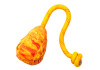 - Зручність захоплення: Текстурована поверхня та мотузкова ручка дозволяють собаці легко підхоплювати іграшку, а власнику — кидати її без зайвих зусиль.