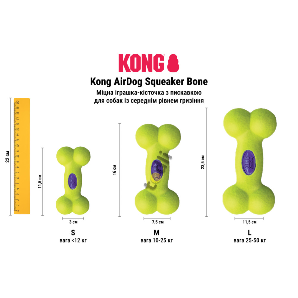 Іграшка Kong Airdog Squeaker Bone розміру L ідеально підходить для собак середніх та великих порід. Завдяки міцному матеріалу вона витримує інтенсивні ігри та жування.