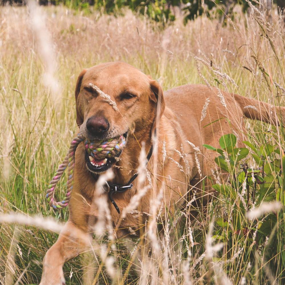 - Міцність та довговічність: Натуральна гума має високу стійкість до укусів, а щільне плетіння каната витримує значні навантаження під час активних ігор.