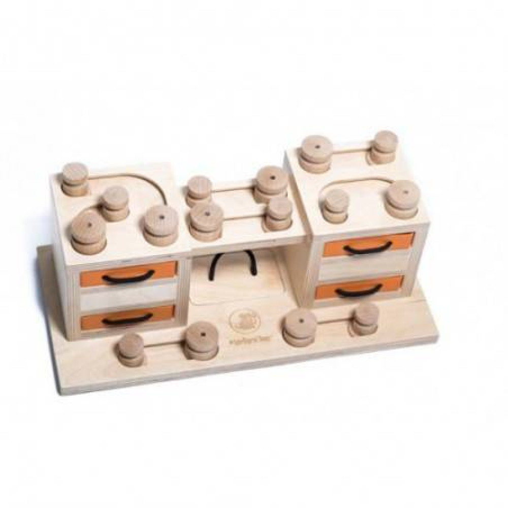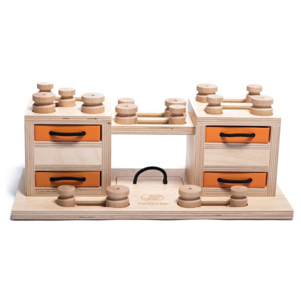 Інтерактивна іграшка-головоломка 2 Towers — це ефективний інструмент для фізичного та ментального розвитку собаки, розроблений для тренування кмітливості. Виріб являє собою дерев'яну конструкцію зі схованками для ласощів, які улюбленець повинен відкрити, застосовуючи нюх та логіку. Такі іграшки для собак допомагають направити енергію тварини в конструктивне русло та запобігають нудьзі.
