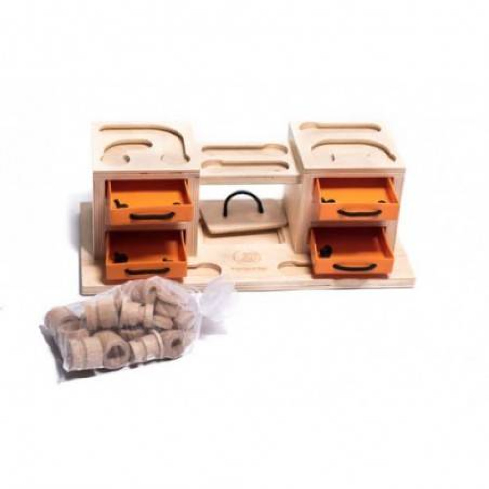 Головоломка базується на принципі пошуку прихованої винагороди. Собаці необхідно зрозуміти, як витягнути або зсунути спеціальні дерев'яні циліндри («вежі») та пластини, щоб дістатися до гранул сухого корму або улюблених смаколиків. Ця механіка стимулює концентрацію уваги та змушує тварину думати, а не просто гризти предмет.