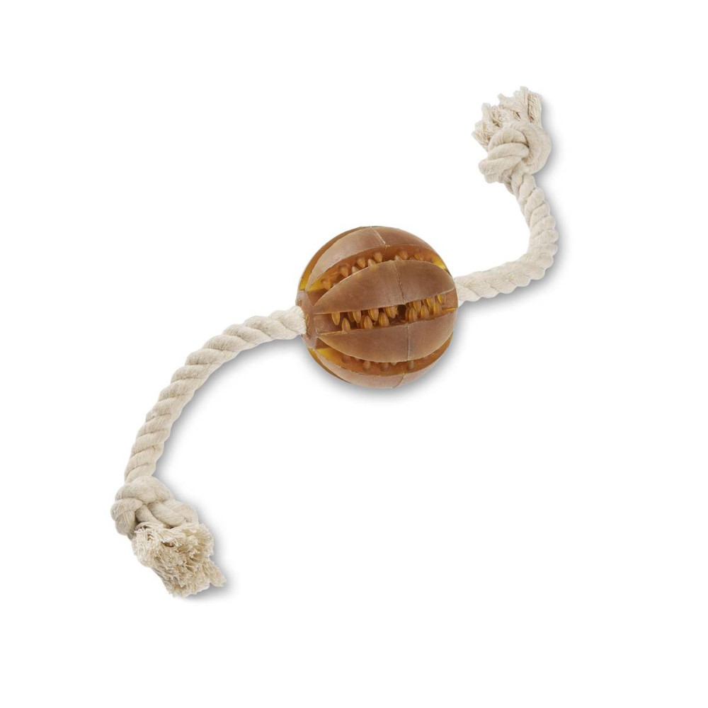 Іграшка канат з м'ячем Wolters Pure Nature Dental Rope Toy Ball — це екологічно безпечний інструмент для активних ігор та підтримки гігієни ротової порожнини вашого улюбленця. Ця іграшка для собак поєднує в собі функції апорту та гризунка, задовольняючи природні інстинкти тварини без шкоди для здоров'я завдяки використанню виключно натуральних матеріалів.
