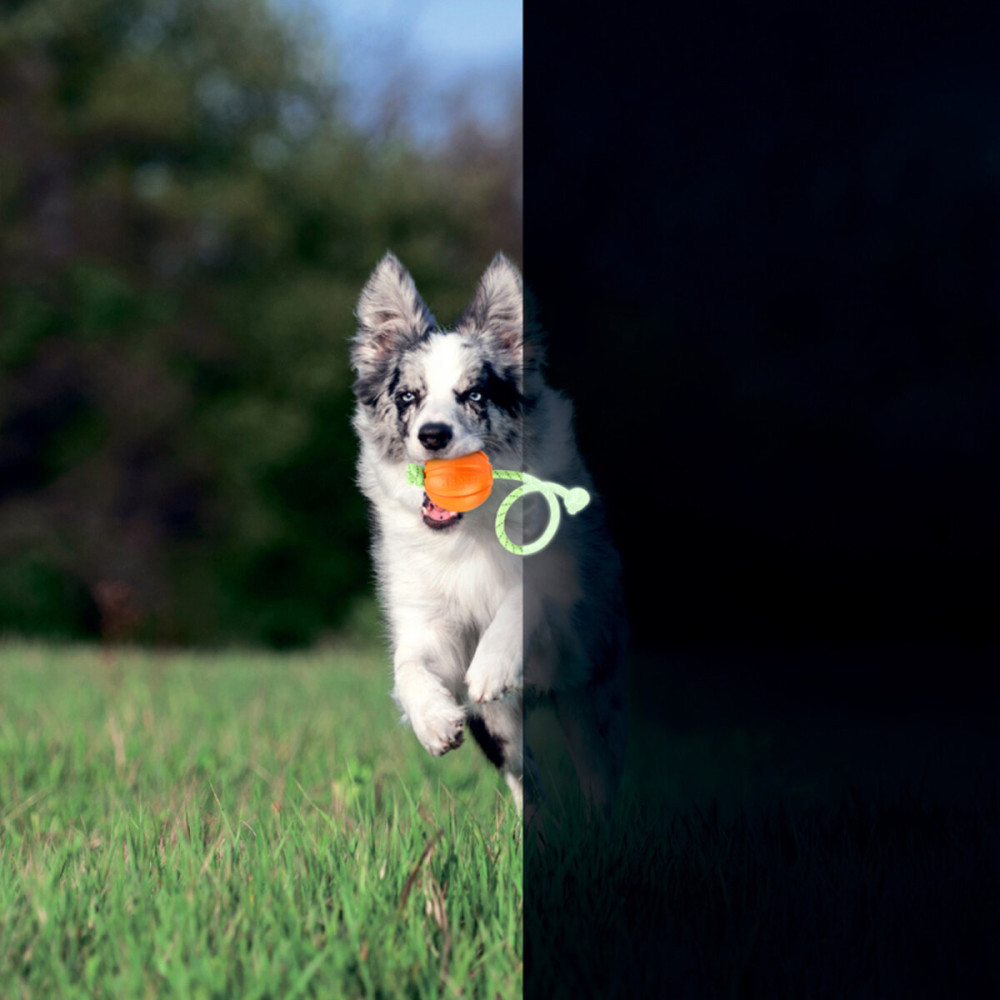 Головною особливістю цієї моделі є світлонакопичувальний шнур, який зберігає світіння до 60 хвилин. Це робить іграшку добре помітною в темний час доби, дозволяючи легко знаходити її у траві чи на снігу. Прогумована поверхня шнура не ріже долоню при активних ривках, створюючи безпечну дистанцію між рукою власника та зубами пса.