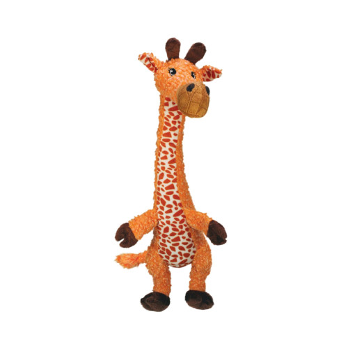 Іграшка Kong Shakers Luvs Жираф оснащена унікальним внутрішнім шейкером, який створює привабливий звук, що додатково стимулює цікавість собаки та заохочує її до гри. М'яка текстура плюшу робить її приємною для тримання в зубах та обіймів, а яскравий дизайн привертає увагу.