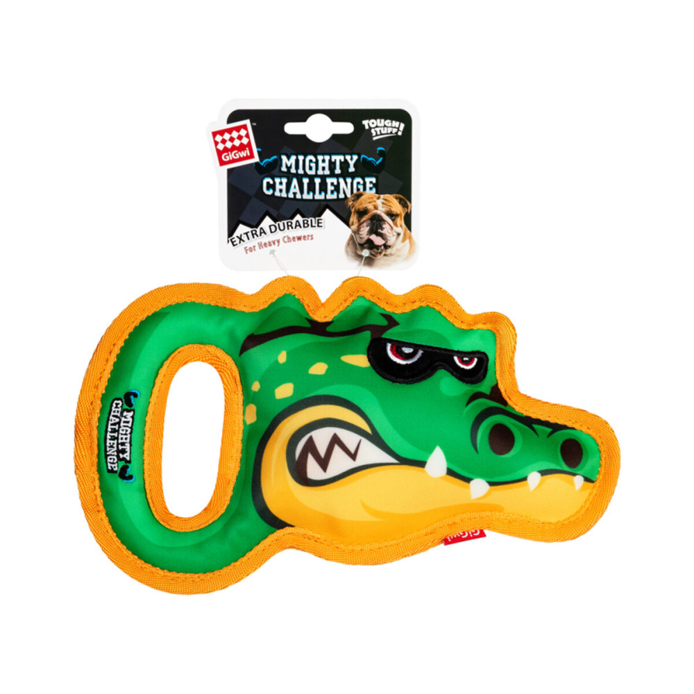 М'яка іграшка Крокодил з пищалкою GiGwi MIGHTY CHALLENGE — це надміцний аксесуар, розроблений спеціально для активних ігор великих порід. Ця м'яка іграшка для собак виготовлена зі спеціального текстилю, що витримує інтенсивні навантаження, укуси та перетягування, забезпечуючи тривалий термін експлуатації.