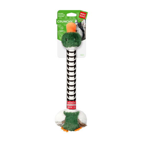 М'яка іграшка WAUDOG Fun Crunchy Качка — це інтерактивний аксесуар, розроблений для стимуляції природних інстинктів тварини. Виріб виконано з комбінації міцних матеріалів (бавовна, поліестер, плюш), а всередині розміщено спеціальний елемент, що робить гру динамічною. Ця м'яка іграшка для собак підходить як для самостійних розваг, так і для спільного дозвілля з власником.