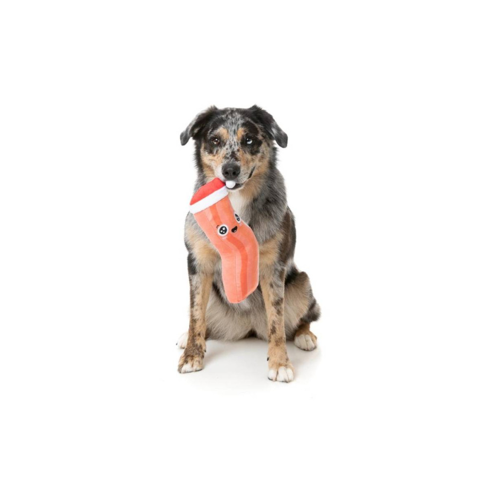 - Привабливий дизайн: Оригінальний різдвяний вигляд з апетитним принтом бекону робить іграшку особливо цікавою для собаки.