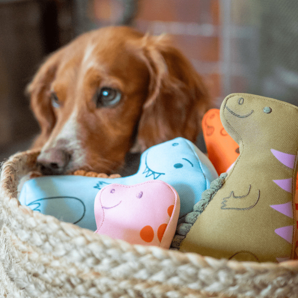- Привабливий дизайн: Яскравий помаранчевий колір та форма трицератопса привертають увагу собаки та стимулюють її до гри.
