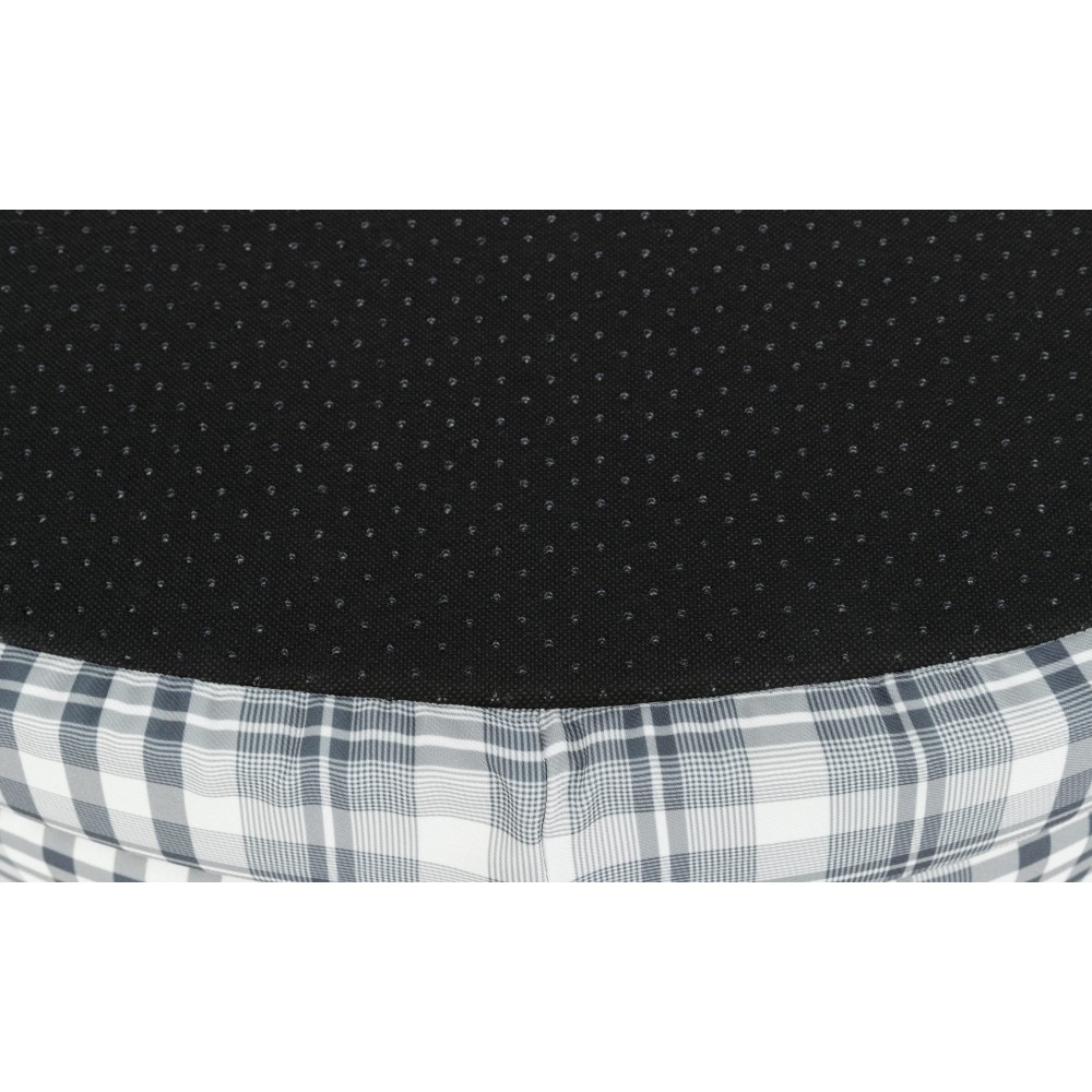 Основа лежака виготовлена з пінопласту, що створює стабільну та ортопедичну поверхню для сну. Двостороння подушка з одного боку покрита бавовною з картатим візерунком, а з іншого – м'яким флісом, дозволяючи адаптувати спальне місце під сезон та вподобання собаки.