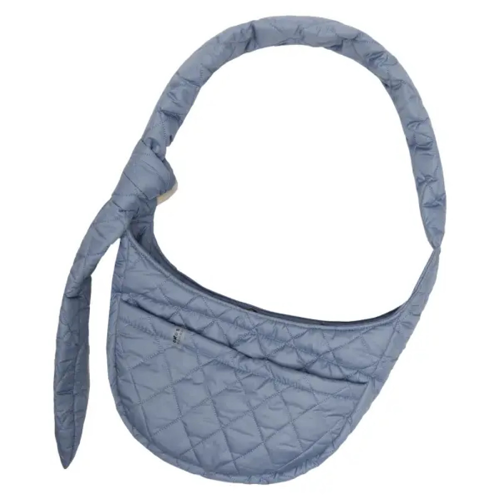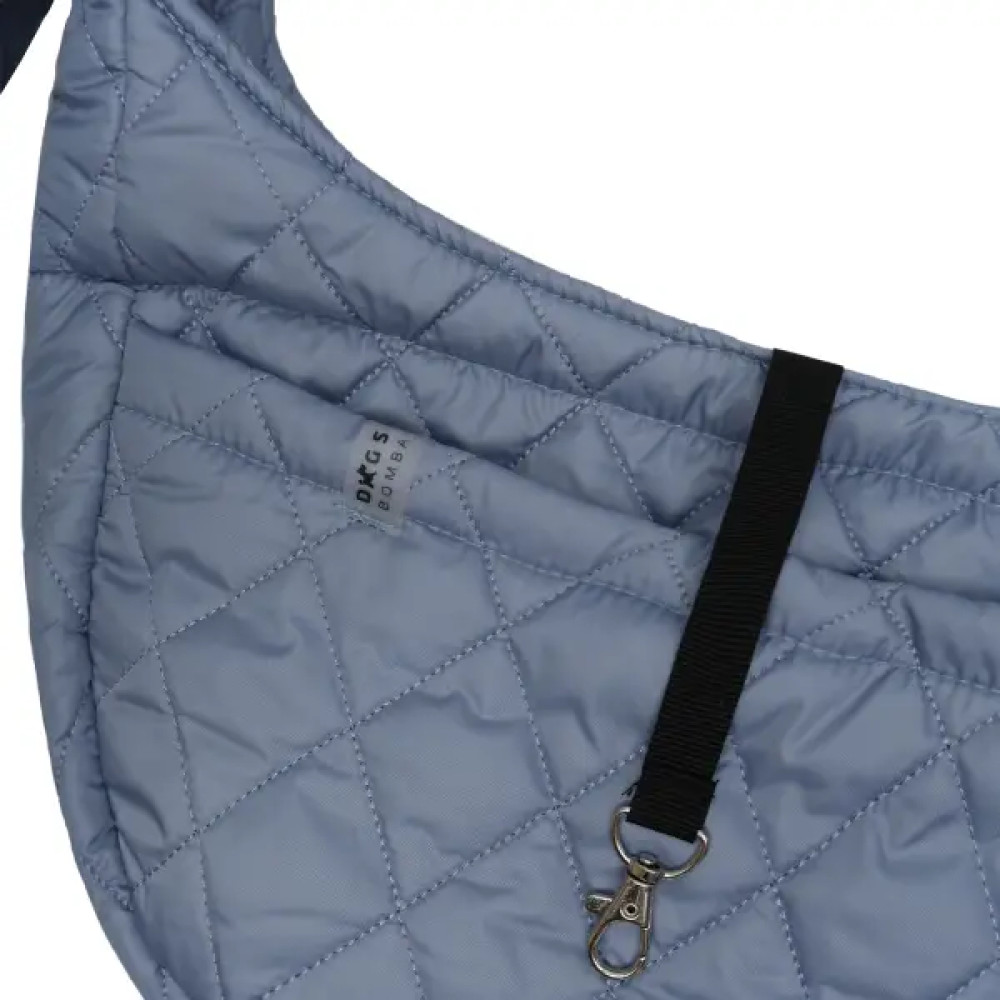 S-116 — стьобаний блакитний слінг-переноска для собак на щоденні прогулянки та поїздки. Зовнішня водовідштовхувальна плащова тканина захищає від легкої мжички й бруду, усередині є спеціальний ремінець для фіксації до нашийника або шлейки. Регульована по довжині ручка дозволяє зручно носити через плече, а кишеня на кнопці тримає смаколики, пакети чи ключі під рукою.