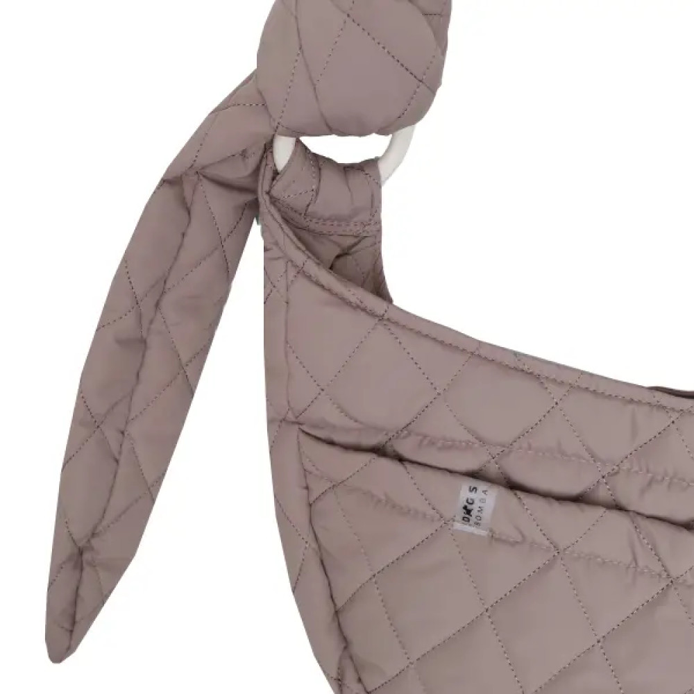 S-117 — стьобаний слінг-переноска для собак у кольорі «моко». Зовні — водовідштовхувальна плащова тканина, яка захищає від легкої вологи та бруду; всередині — спеціальний ремінець для фіксації до нашийника чи шлейки. Регульована по довжині ручка допомагає налаштувати посадку під зріст власника, а кишеня на кнопці тримає смаколики, пакети або ключі під рукою.