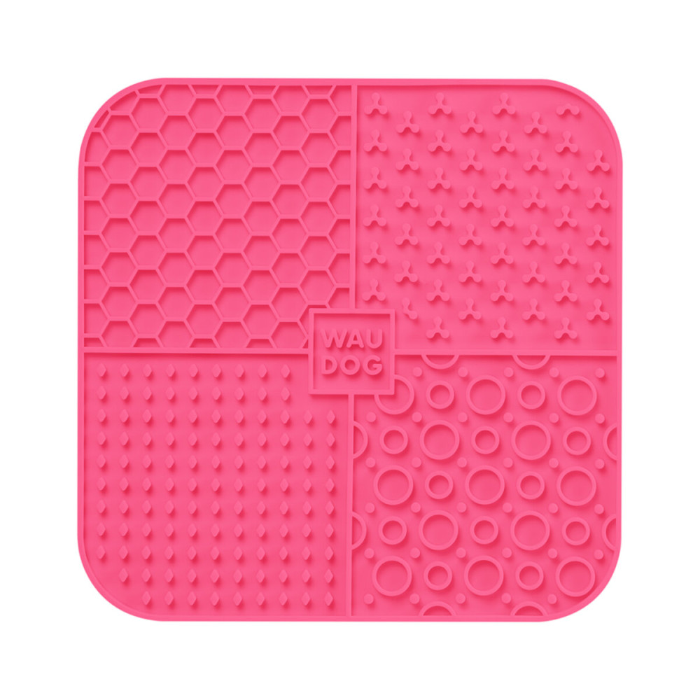 Рожевий килимок для злизування для собак WAUDOG Silicone створений для збагачення процесу годування вашого улюбленця. Він ідеально підходить для вологих кормів, паштетів або йогуртів. Завдяки спеціальній текстурованій поверхні, килимок змушує собаку їсти повільніше, що сприяє кращому травленню, запобігає здуттю та допомагає підтримувати здорову вагу. Використання килимка перетворює звичайний прийом їжі на захопливу та заспокійливу активність.