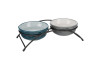 - Матеріал: Миски — кераміка, підставка — метал з порошковим покриттям.