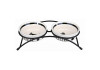 Ключова особливість цього набору — металева підставка з порошковим покриттям, яка підіймає миски на зручну для собаки висоту. Це не лише покращує поставу під час їжі, але й запобігає ковзанню та перевертанню мисок завдяки нековзним гумовим ніжкам. Важкі керамічні миски надійно фіксуються у тримачі.
