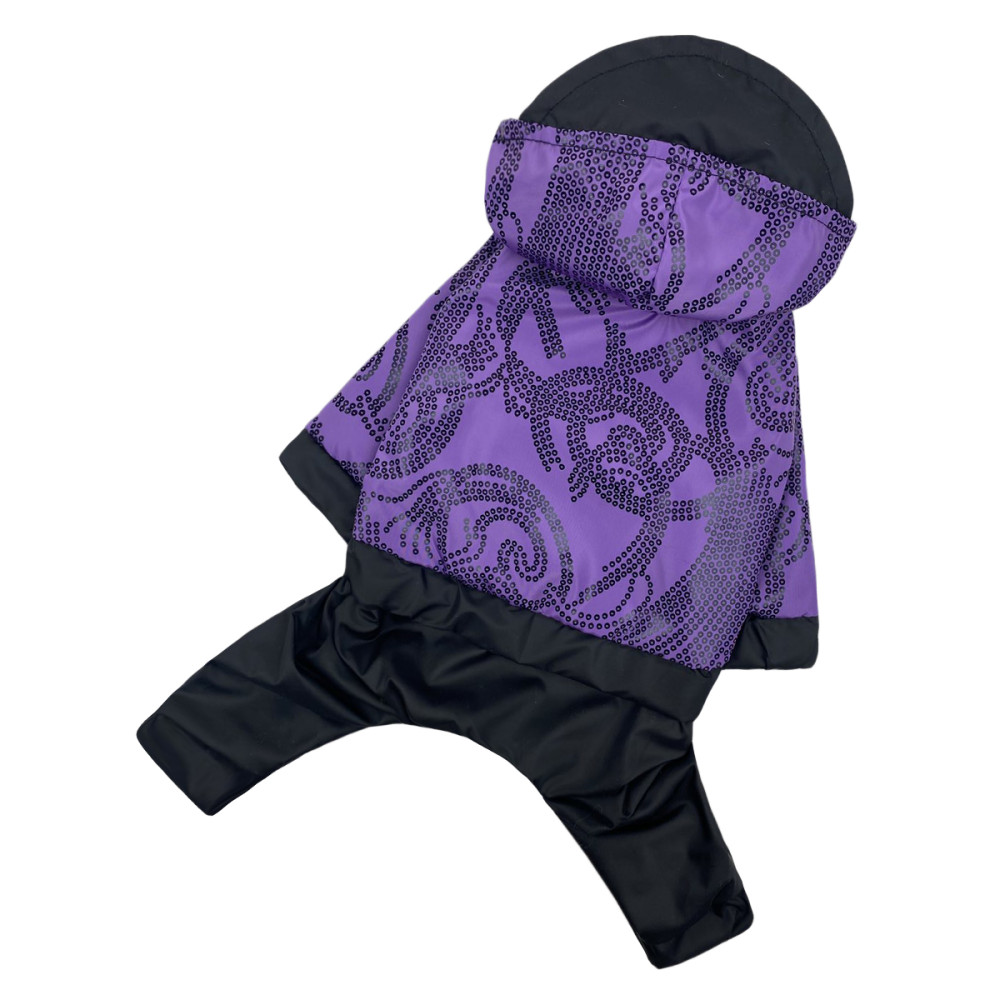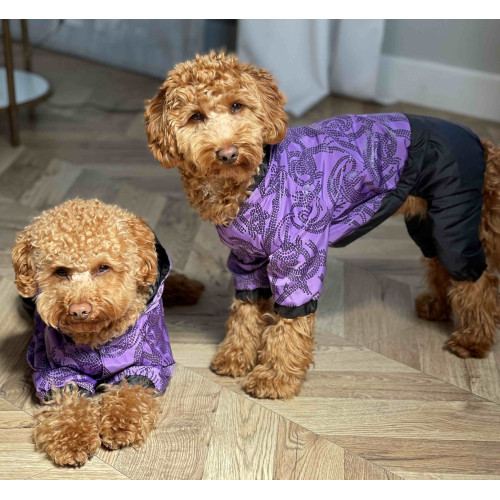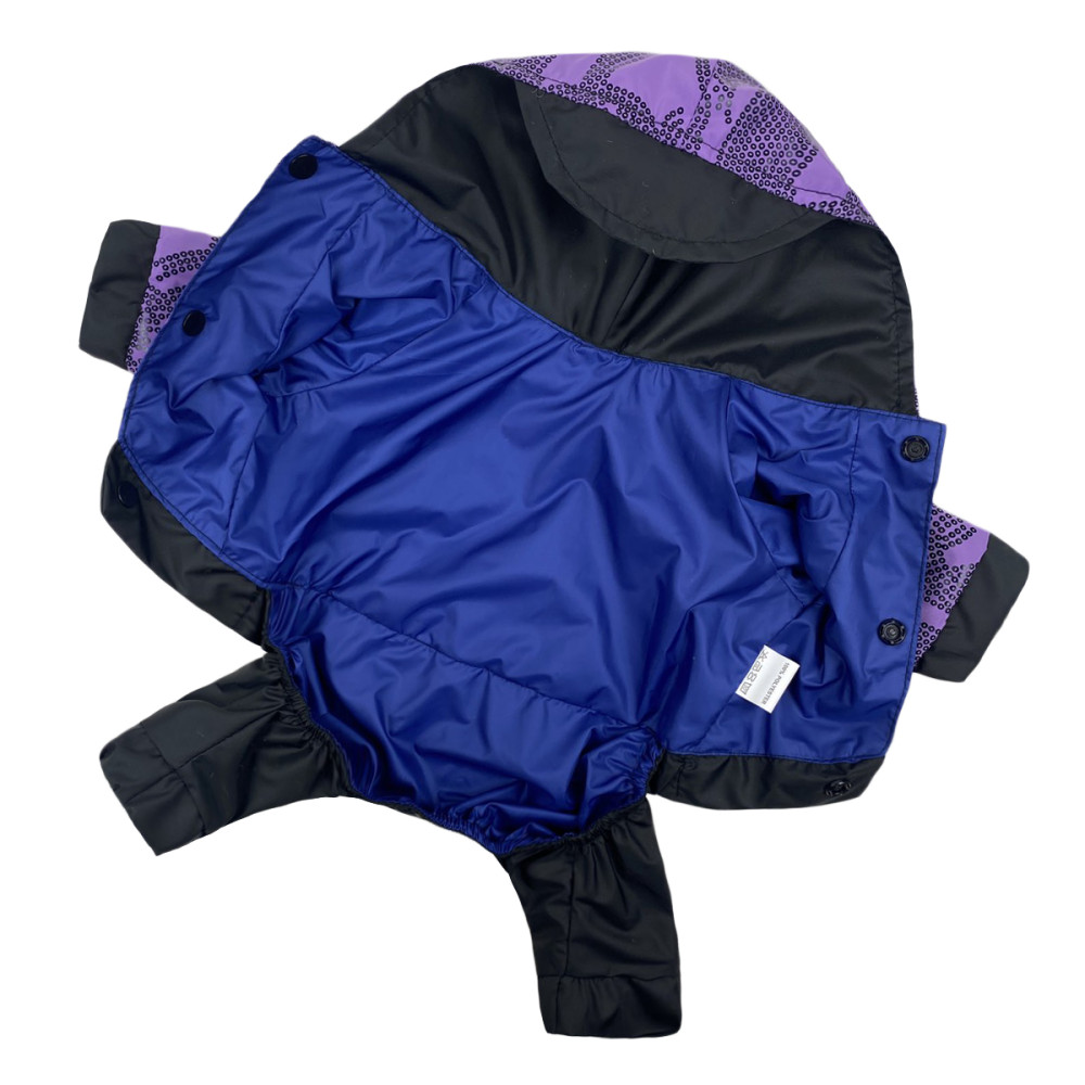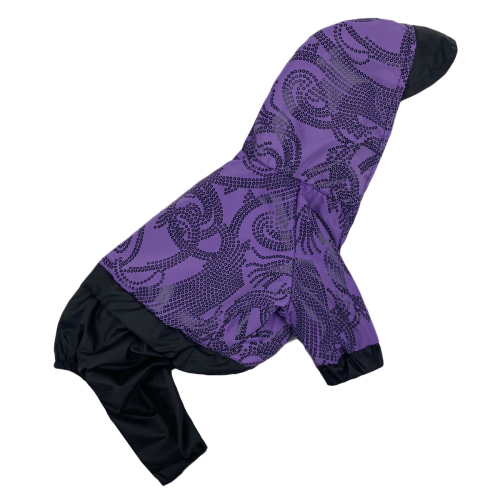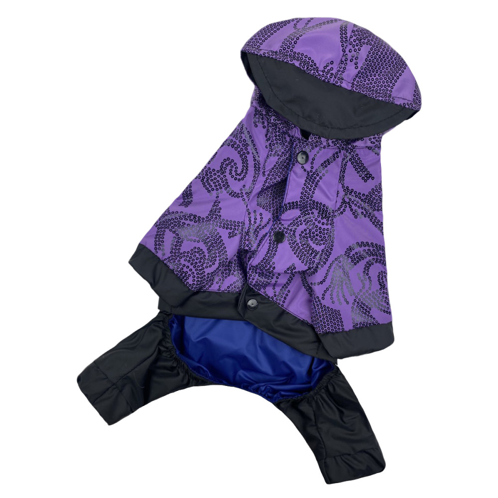 Дощовик для собак Dogs Bomba M-92 у бузковому кольорі з візерунками виготовлений з двох шарів водовідштовхувальної плащівки. Модель забезпечує повний захист шерсті від намокання та бруду, а завдяки універсальному крою підходить як для хлопчиків, так і для дівчаток. Це оптимальне рішення для прогулянок у дощову погоду весною або восени.