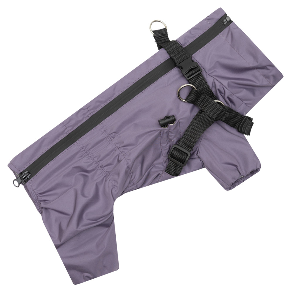 Дощовик зі шлеєю лавандовий для собак Dogs Bomba MS-15 — це практичний одяг для захисту улюбленця від дощу, вітру та бруду під час прогулянок. Модель пошита з водовідштовхувальної плащової тканини як зовні, так і на підкладці, що забезпечує максимальний захист від вологи. Завдяки продуманому крою унісекс та зручній застібці-блискавці на спині, цей дощовик для собак легко та швидко одягати перед виходом на вулицю.