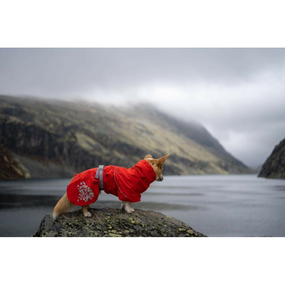 Hurtta Monsoon Coat ECO — легкий помаранчевий дощовик для собак на дощ і вітер. Без підкладки, компактно складається. Мембрана 10 000 мм та повністю проклеєні шви тримають зливу. Комір Rainstopper щільно закриває шию, отвір для повідка застібається на кнопку і не пропускає воду. Посадка точна завдяки регулюванню довжини спини та еластичному поясу, петлі на задні лапи утримують попону під час бігу. Світловідбивні елементи підвищують видимість. Еко-матеріали, fluorocarbon-free. Колір: помаранчевий.