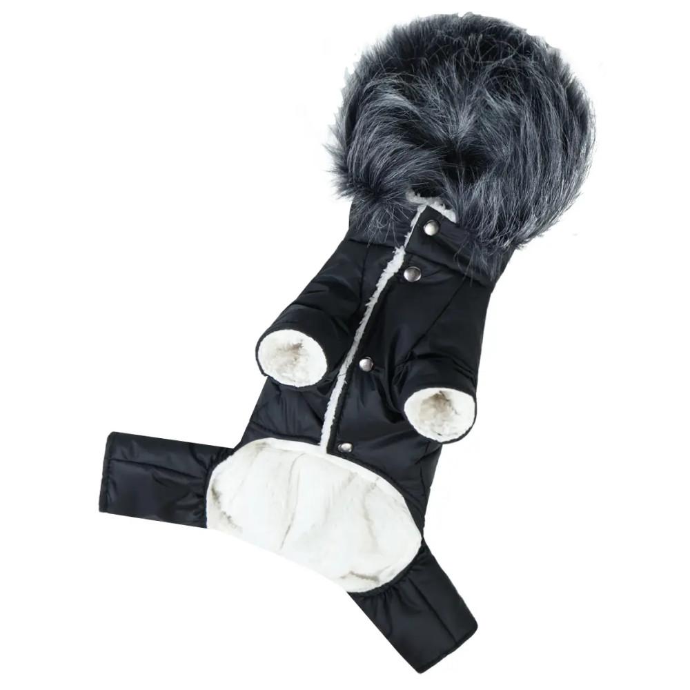 Зимовий комбінезон для собак на хутрі чорного кольору AM-43 – стильне та тепле рішення для прогулянок у холодну пору року. Завдяки якісним матеріалам і продуманому дизайну ваш улюбленець почуватиметься комфортно навіть узимку.