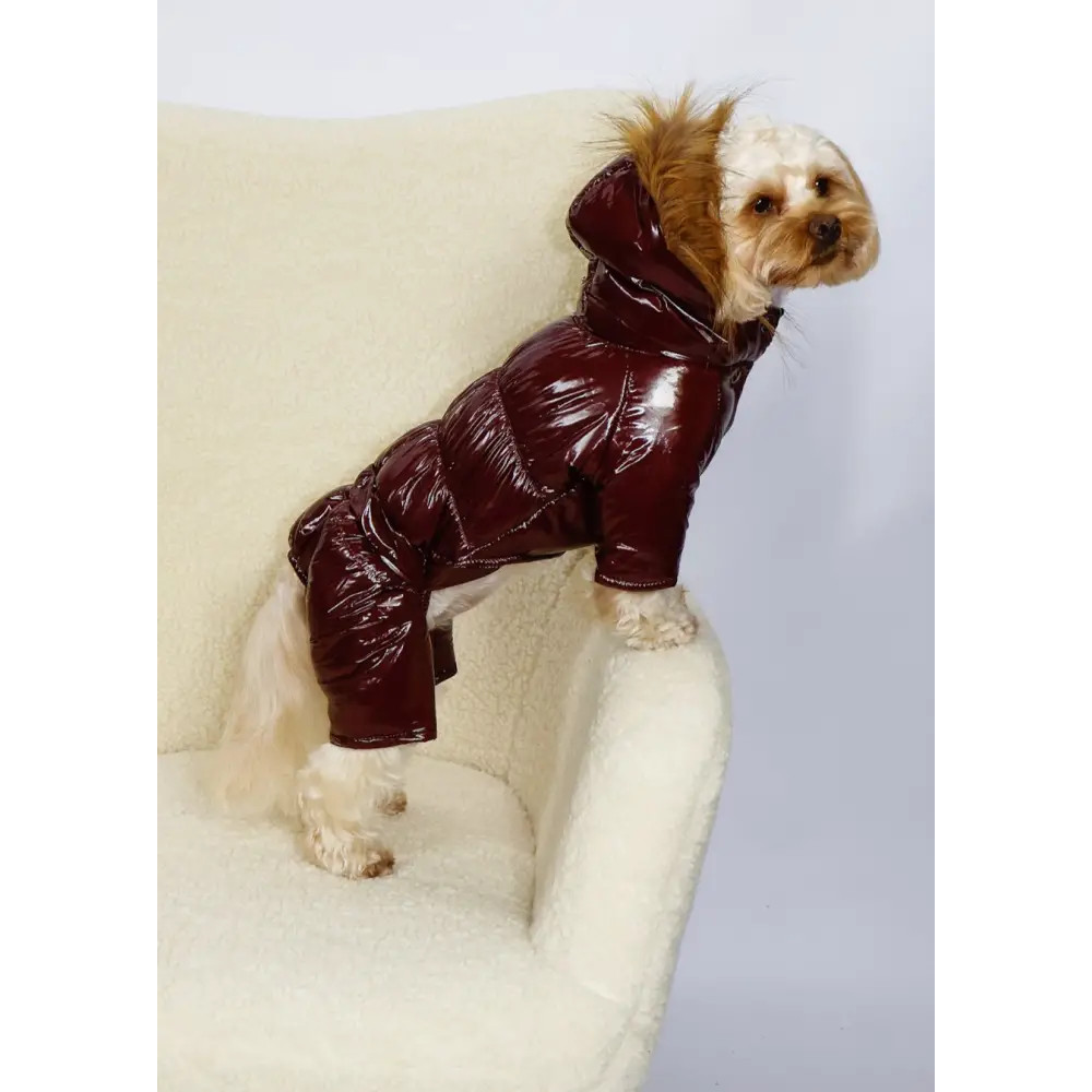 Зимовий комбінезон для собак A-85 лакований марсала – це стиль, тепло та комфорт для вашого улюбленця у прохолодну пору року.