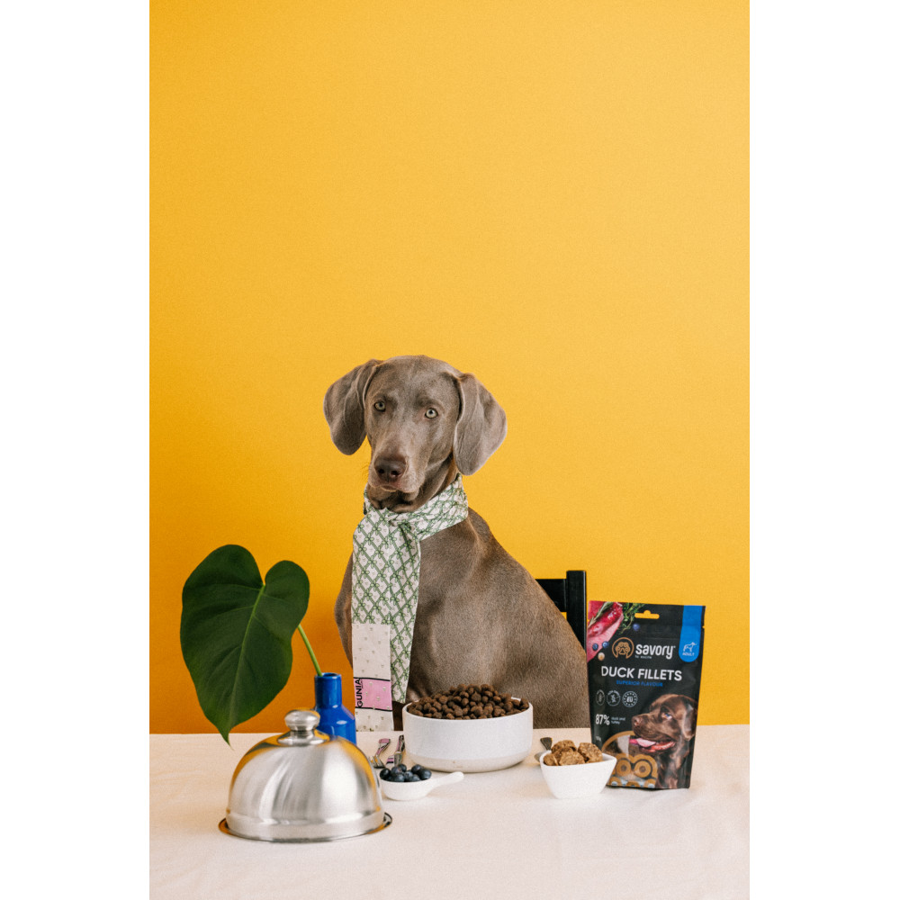 Лінійка ласощів Джерки від Savory – це нове поєднання улюблених смаків, високий вміст м’яса та щільні великі шматочки які можна смакувати ще довше. Із вуглеводів лише горохове борошно, що має низький глікемічний індекс та абсолютно безпечне для улюбленців які мають чутливість до глютену. Додавання корисних трав та ягід робить смаколики Savory не лише приємним але й корисним перекусом. Джерки для дорослих собак філе качки з індичкою містить 87% справжнього м’яса качки та індички, не містить ГМО, не містить зернових. Довжина одного філе: 6,5-7 см