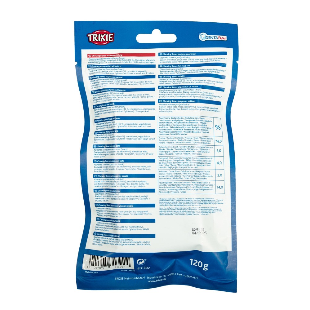 Додатковий корм для собак. Жувальна кісточка для очищення зубів. Багата на харчові волокна. Додаткове живлення для вашого собаки. Інгредієнти: сиромятна шкіра, м'ясо курки (12%), овочеві субпродукти.