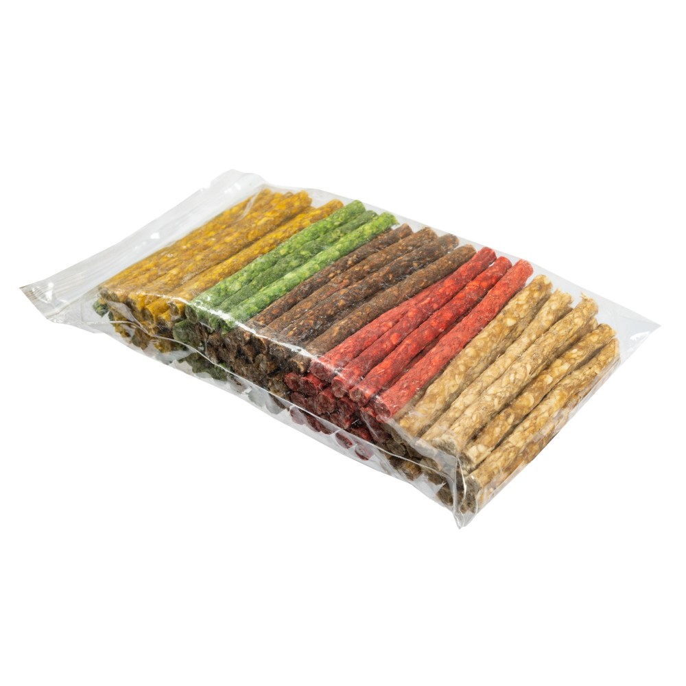 Крім звичайного корму, вихованців слід періодично балувати ласощами. Це допоможе заохочувати їх і давати додаткові порції корисних речовин. Знаменитий німецький виробник зоотоварів Trixie надає великий асортимент ласощів для тварин і пропонує вам Ласощі для собак Trixie Палички мікс 10 см (100 шт.). Даний продукт насичений великою кількістю вітамінів, поданих з відмінним смаком, який точно сподобається вашому вихованцеві! Ласощі мають такі переваги: - Зроблені з натуральних речовин - Нешкідливі для вихованця - Містять в собі вітаміни і корисні мікроелементи - Позитивно впливають на здоров'я вихованця - Покращують стан шерсті, зубів, внутрішніх органів - Покращують настрій і самопочуття - Мають відмінні смакові якості - Сприяють розвитку щелепи і зубів Використання ласощів вдихне нове життя в вашого вихованця. Щодня його самопочуття буде поліпшуватися, здоров'я стане міцнішим, а енергії буде в рази більше. Додатковий корм для собак. Паличка для собак жувальна, пресована. Кількісний склад: сиром'ятна шкіра. Якісний склад: білок- 89,3%, Жир -2%, Зола- 0,5%, Клітковина - 0,3%. Вага 6г. Зберігати в недоступному для дітей місці. Не містить барвників та консервантів. Без ГМО. Дозування на день див. на пакуванні.
