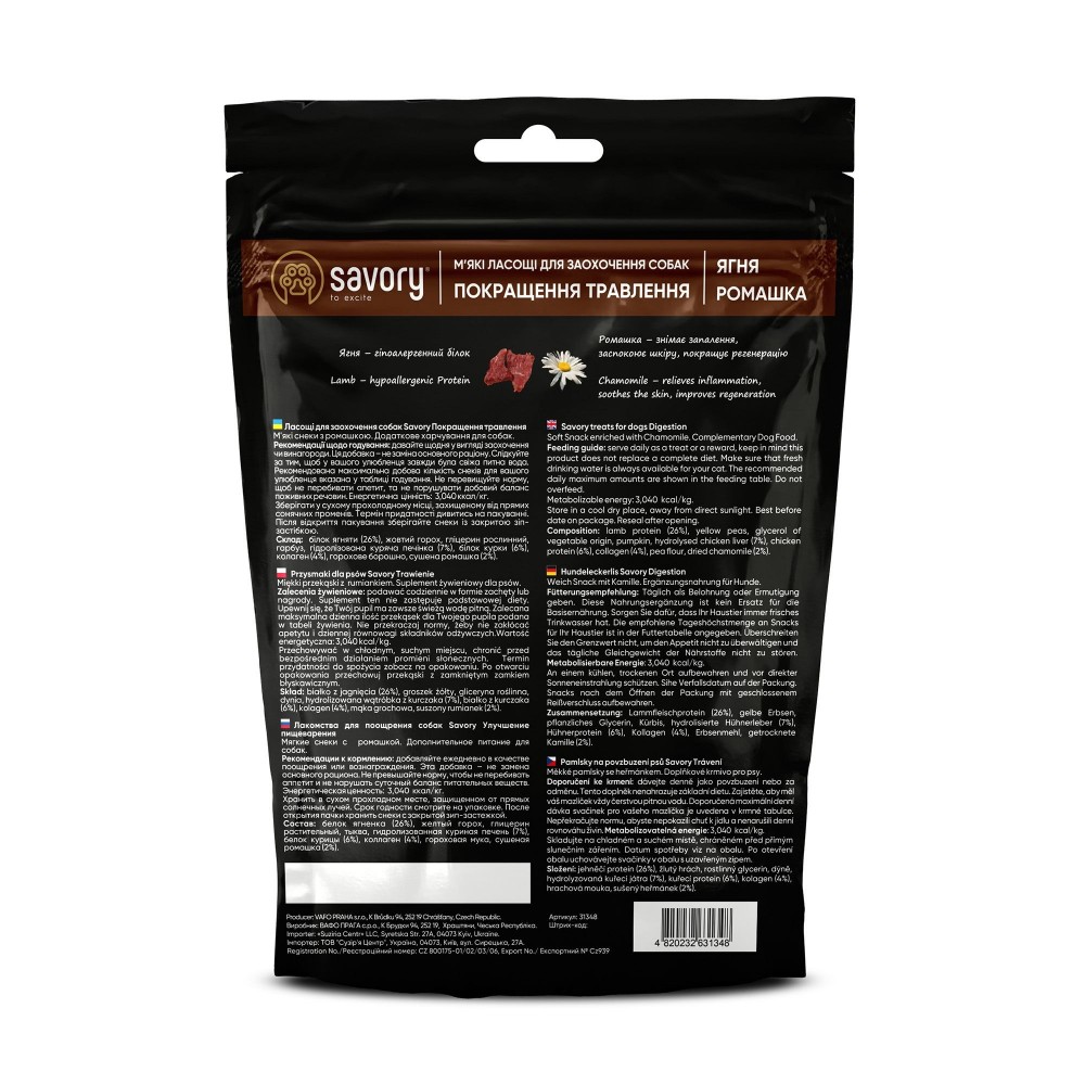 Savory (Україна) виробляє ласощі з натуральних інгредієнтів. Ексклюзивна рецептура з м’ясом першої категорії без сої та ГМО. Без зерна, цукру, штучних консервантів та барвників — тільки корисне для вашої собаки.