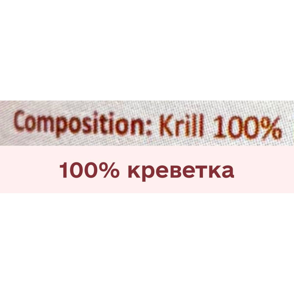 Склад ідентичний — 100% креветки. Упаковка 30 г — це компактний варіант для першого знайомства, подорожей або прогулянок. Якщо собаці сподобалося — переходьте на більшу упаковку 65 г.