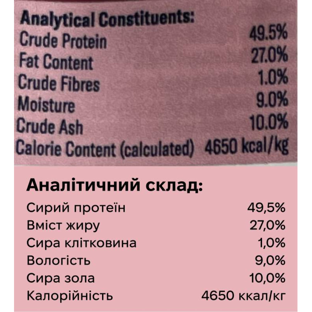 | Обмінна енергія | 4 650 ккал/кг |