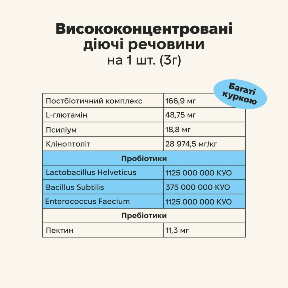 | Тип | функціональна добавка з пробіотиками |
