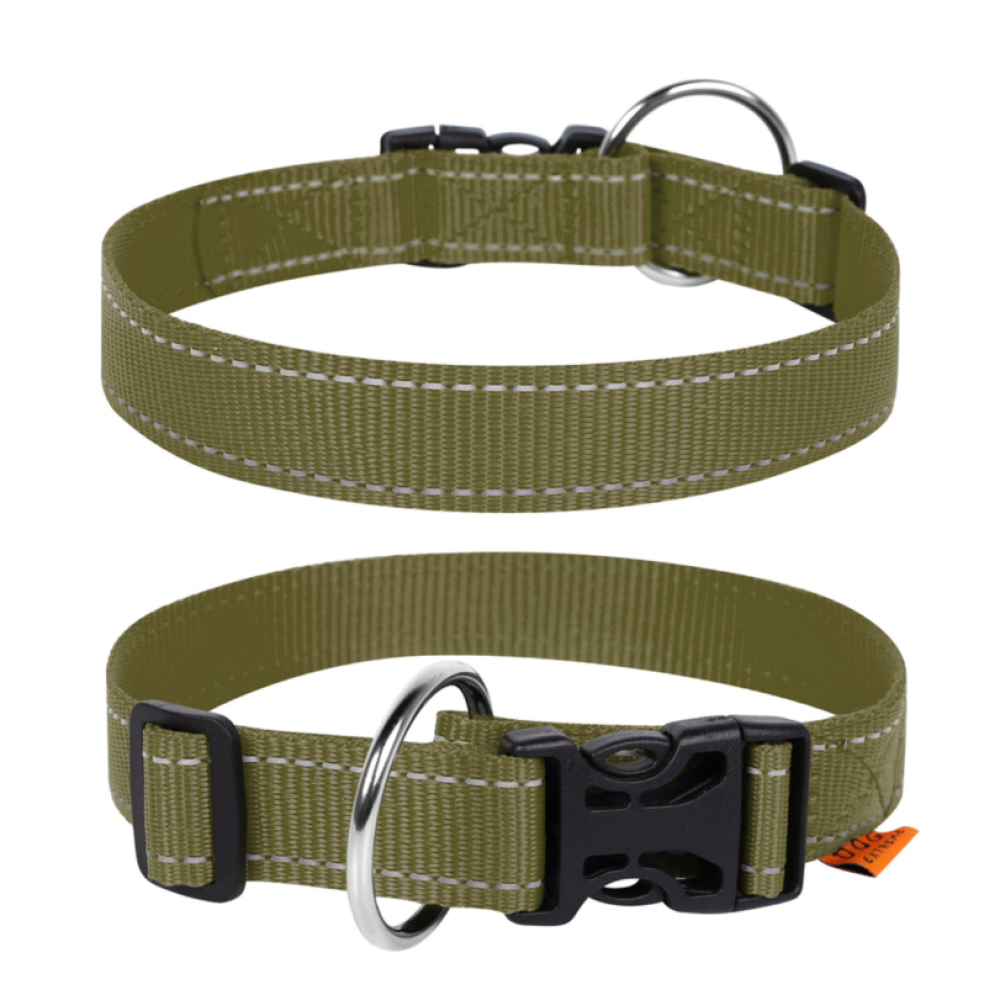Регульований нашийник для собак Dog Extreme у кольорі хакі виготовлений із міцного нейлону, який стійкий до зношення та зберігає еластичність навіть при активному використанні. М’яке плетіння лягає комфортно, не натирає шкіру та забезпечує собаці свободу рухів.