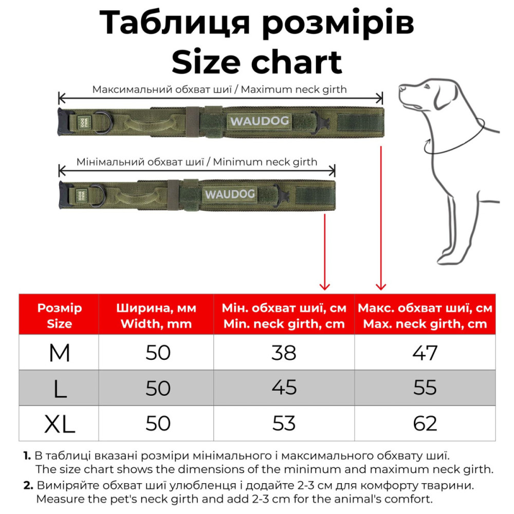 - Персоналізація: Нашийник має спеціальну велкро-панель (липучку) для кріплення змінних патчів з ім’ям собаки, позивним або шевроном.