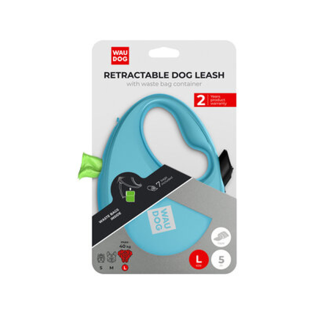 WAUDOG R-leash — легка рулетка для щоденних прогулянок. Керуйте довжиною одним натиском, зберігайте пакети у вбудованому контейнері, будьте помітні завдяки світловідбивній стрічці.
