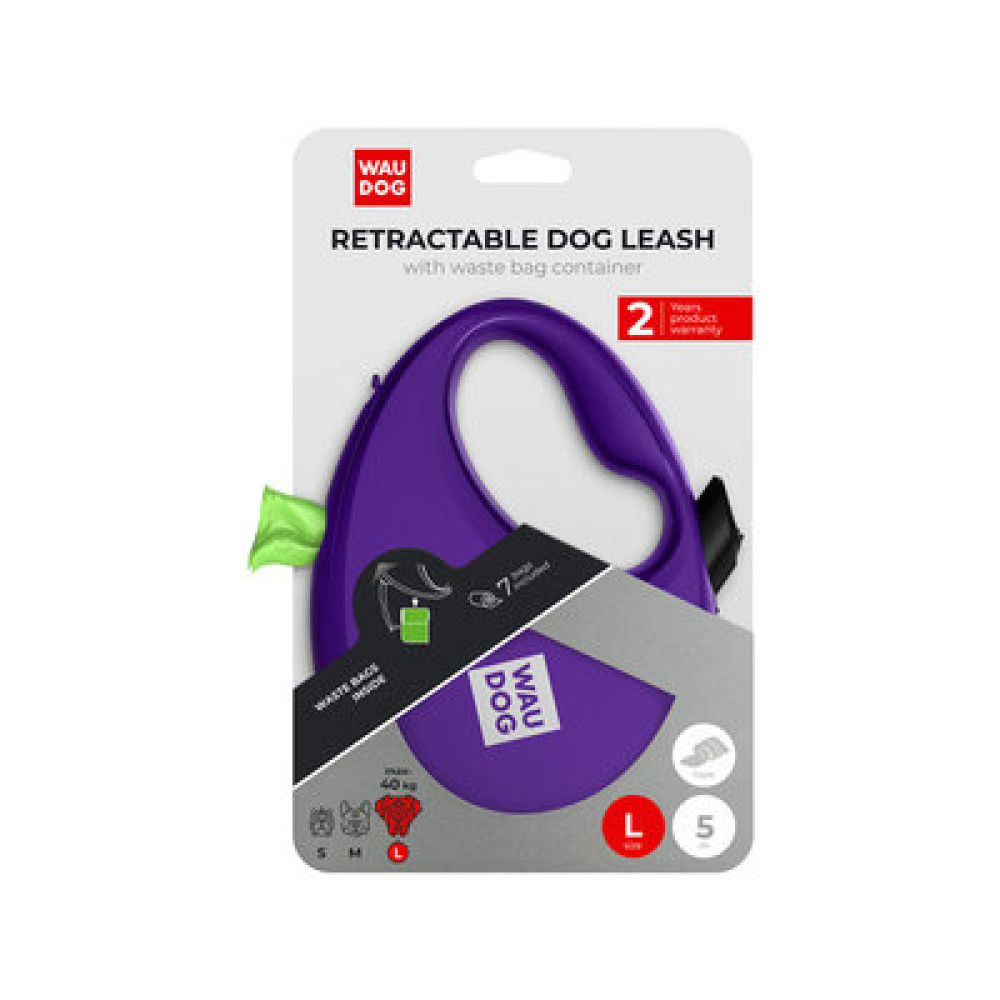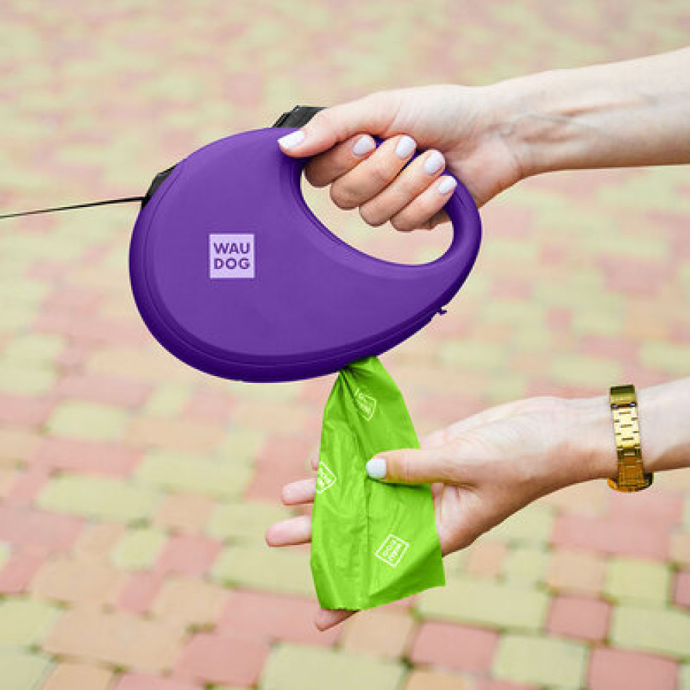 WAUDOG R-leash — легка, міцна рулетка для контрольованих прогулянок. Керуйте довжиною одним натиском, зберігайте пакети у вбудованому контейнері, будьте помітні завдяки світловідбивній стрічці.