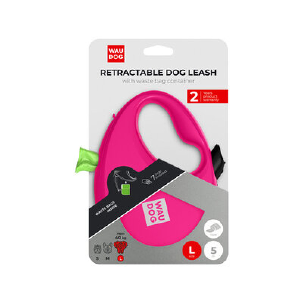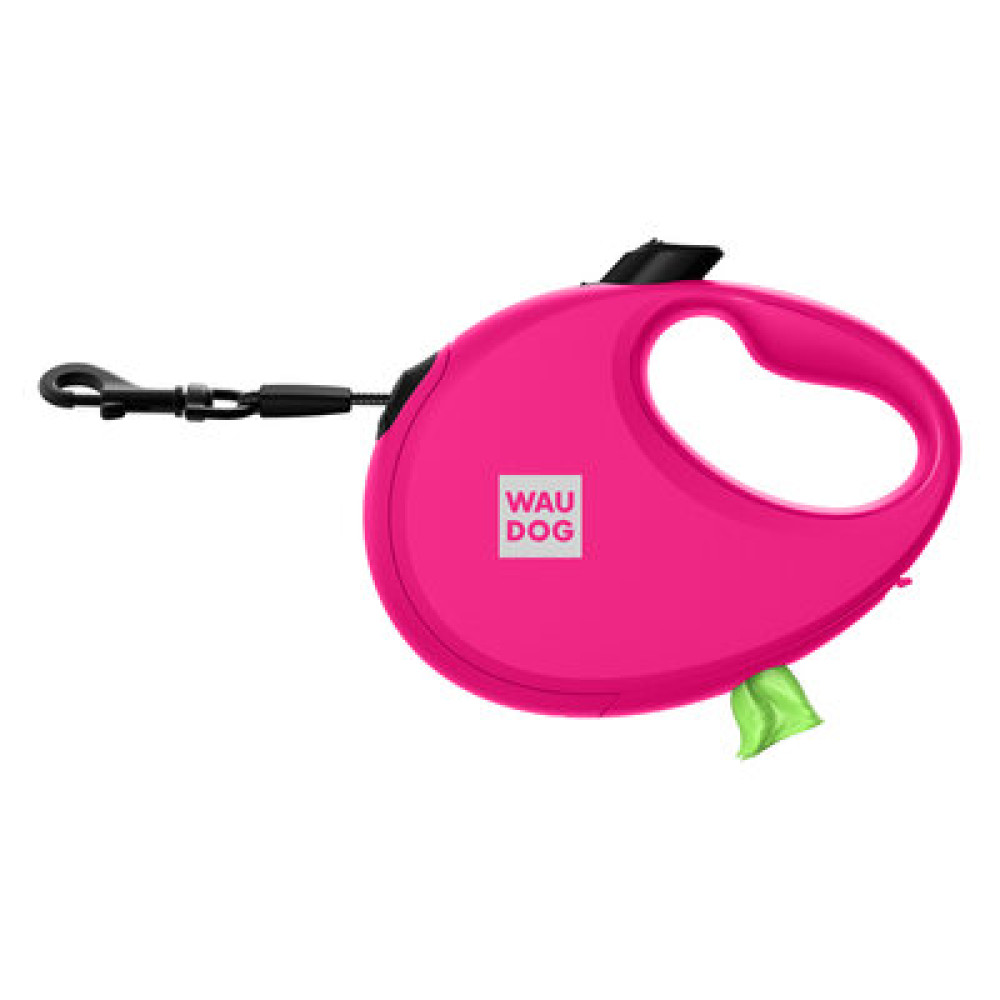 WAUDOG R-leash — зручна рулетка для щоденних прогулянок і тренувань. Контролюйте дистанцію одним натиском, тримайте пакети у вбудованому контейнері, залишайтеся помітними завдяки світловідбивній стрічці.