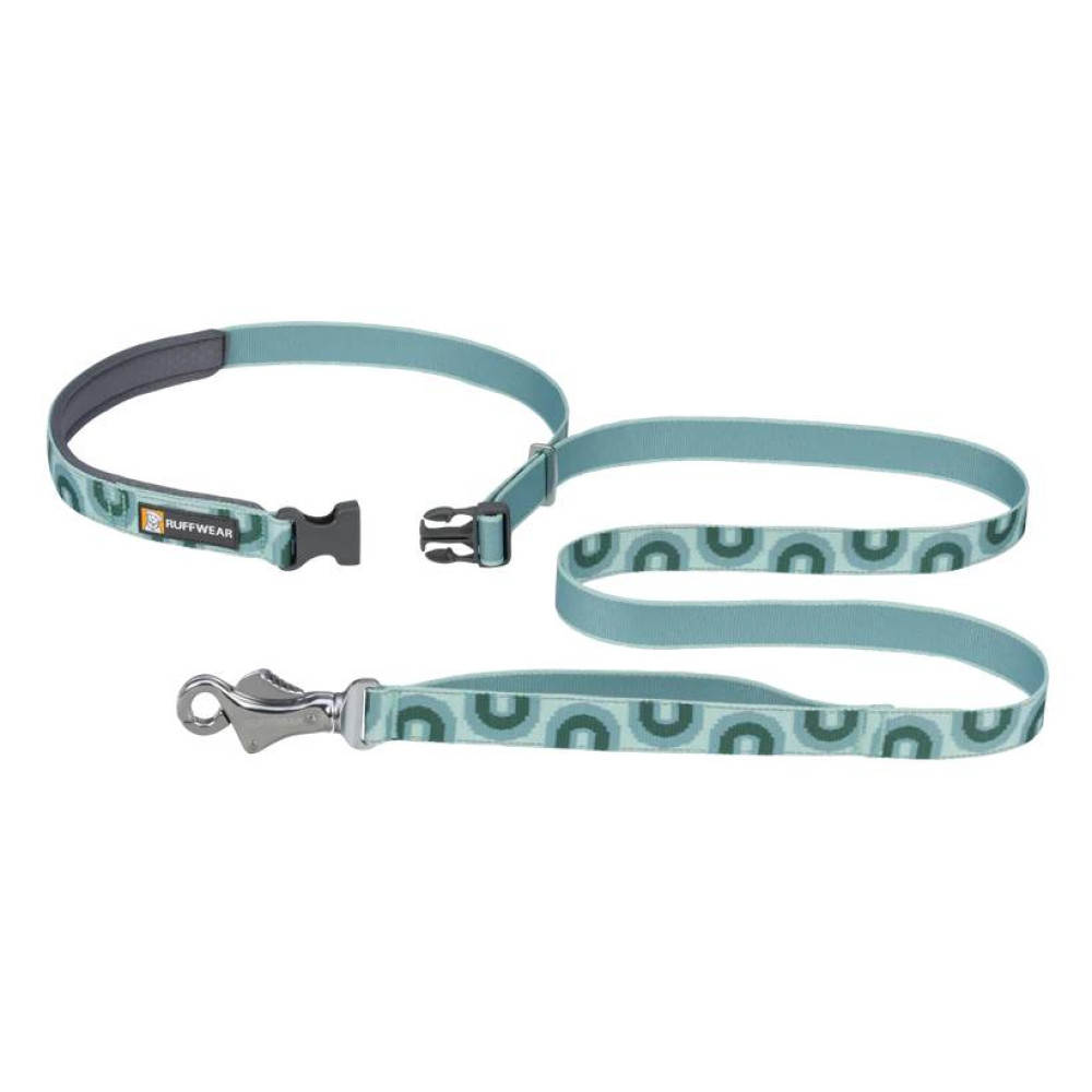 Рефлекторний повідець для собак Ruffwear Crag™ бірюзово-зеленого кольору – це універсальний та міцний аксесуар для щоденних прогулянок та активного відпочинку. Його ключова особливість — можливість використання як у руках, так і на поясі для бігу або прогулянок вільними руками. Виготовлений зі зносостійкої стрічки, повідець оснащений м'якою ручкою для комфорту та унікальним карабіном Talon Clip™ для безпечного кріплення.