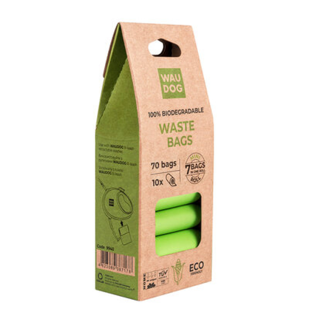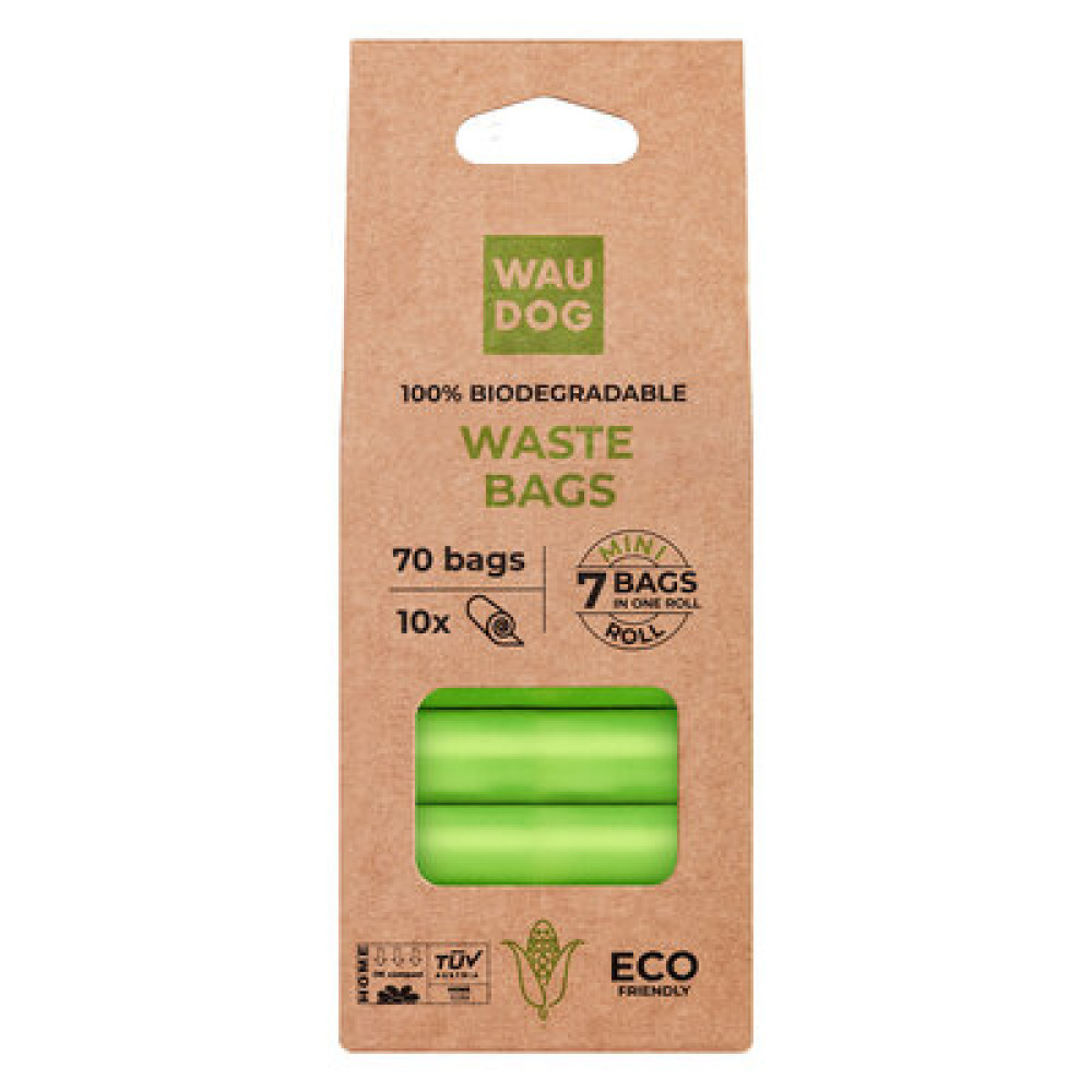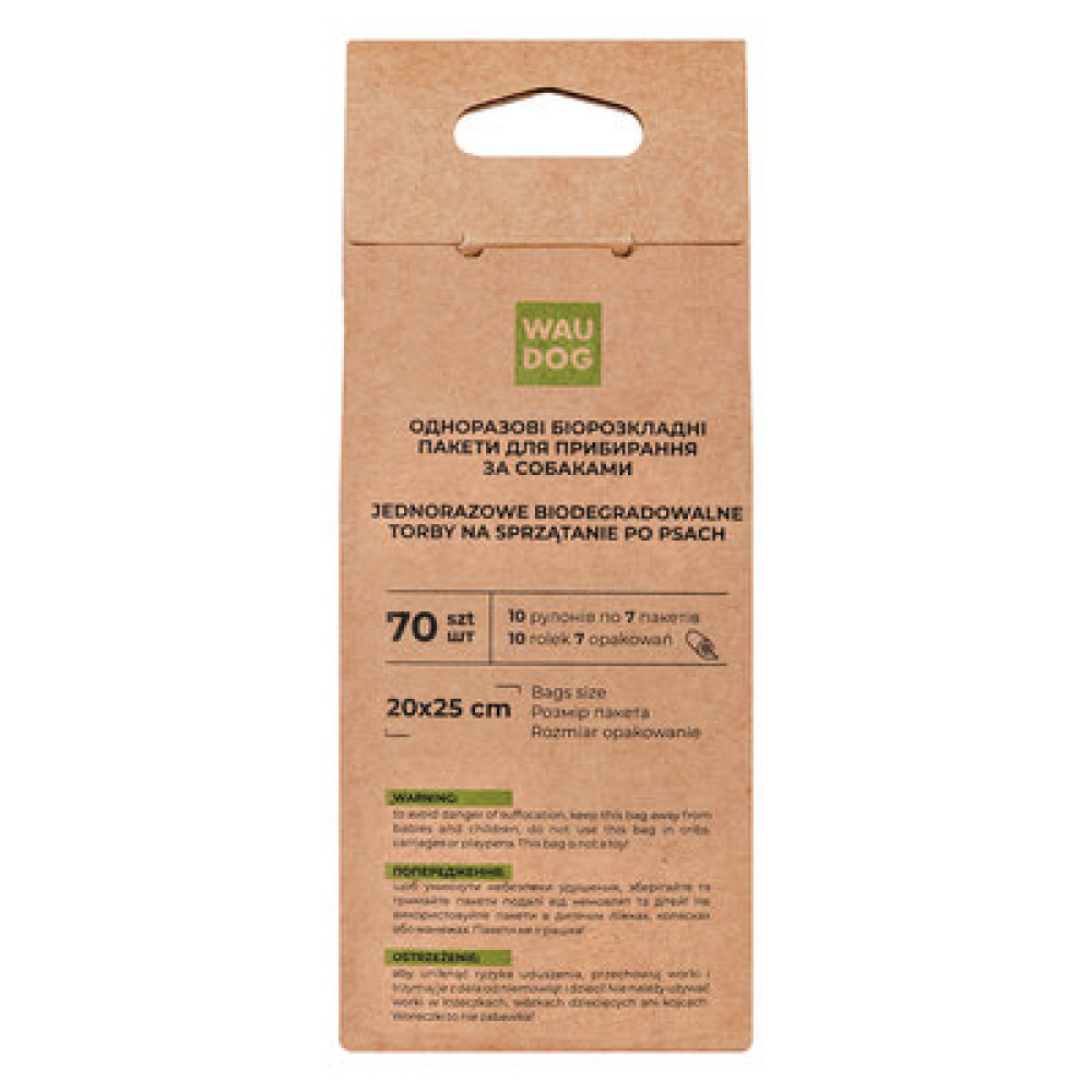 Біорозкладні пакети WAUDOG МІНІ 20×25 см — еко-рішення для прибирання на прогулянці: виготовлені з кукурудзяного крохмалю, не містять поліетилену та повністю розкладаються.