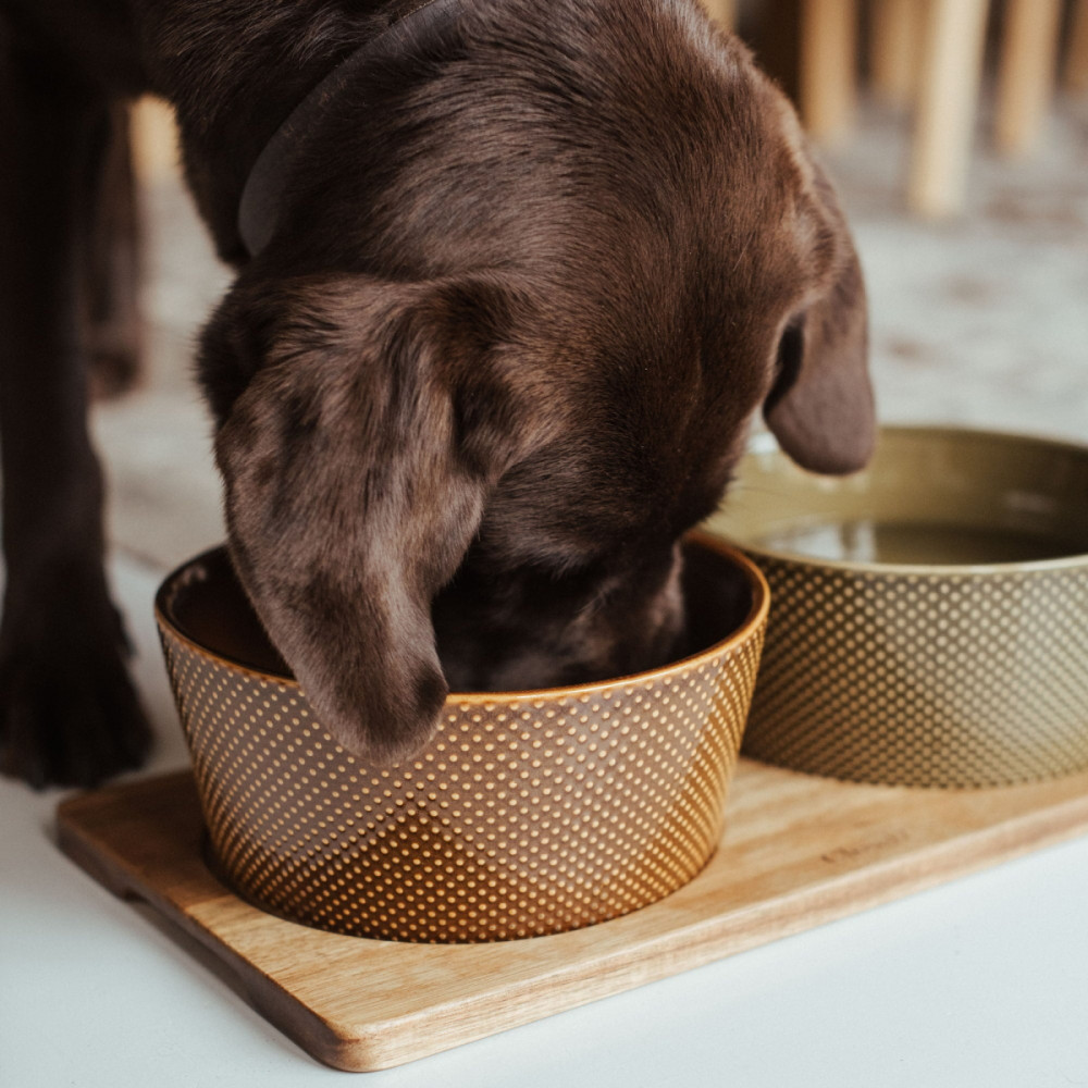Миска изготовлена из пищевой керамики, что гарантирует безопасность для здоровья собаки и не впитывает запахи. Рельефная текстурная поверхность и естественный коричневый оттенок делают ее изысканным элементом любого интерьера, который подойдет к аксессуарам для собак премиум-класса.