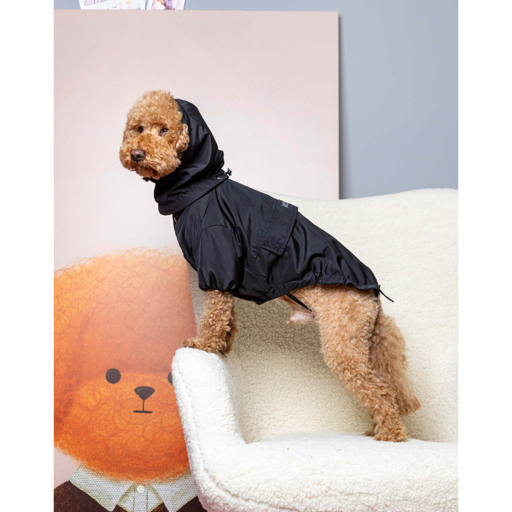 Главной особенностью куртки является съемный капюшон анатомической формы. Его можно отстегнуть или подвернуть, превратив в высокий воротник, защищающий шею. Для удобства владельцев предусмотрено скрытое отверстие для шлейки, которое позволяет легко пристегивать поводок, не снимая одежду.