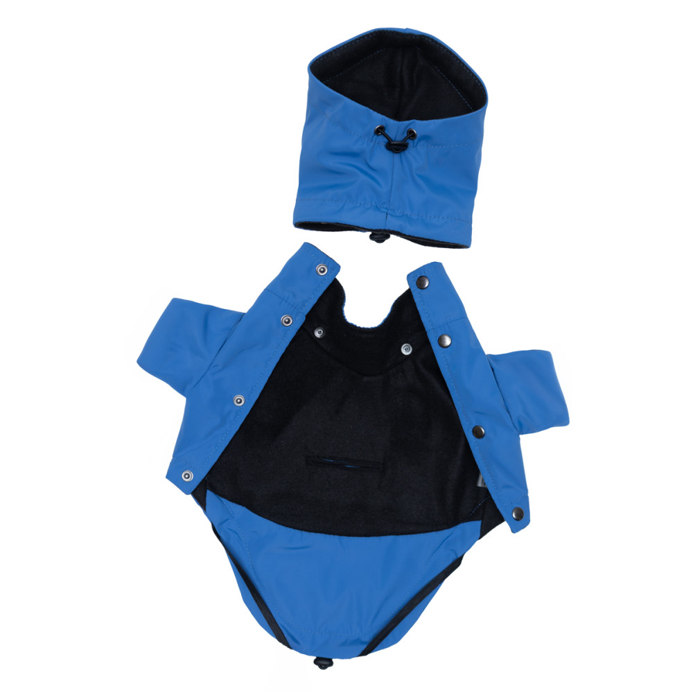 Демисезонный дождевик-куртка Dogs Bomba M-146 изготовлен из плотной водоотталкивающей плащевки с теплой подкладкой из флиса. Модель застегивается на кнопки на животе, что обеспечивает быстрое надевание. Изделие надежно защищает от ветра и осадков, сохраняя тепло тела. Это отличный выбор, если вы ищете функциональные дождевики для собак на прохладную весну или осень.