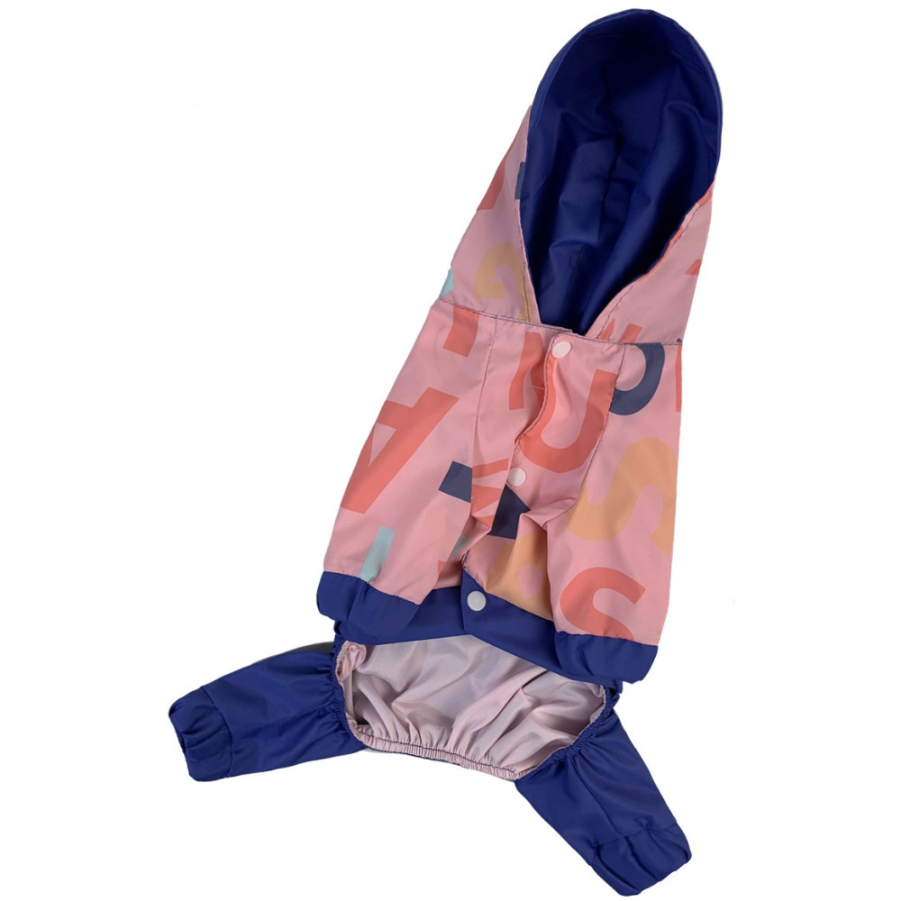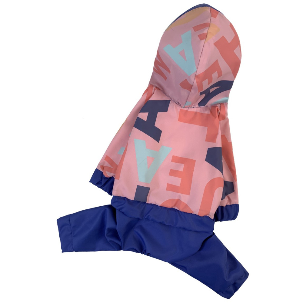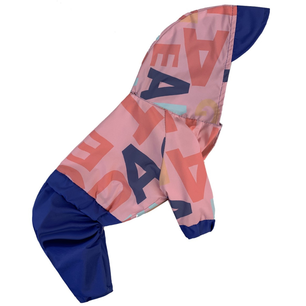 Розовый дождевик для собак Dogs Bomba M-103 с принтом в виде букв создан для защиты вашего питомца от дождя, ветра и грязи. Модель изготовлена из двойного слоя водоотталкивающей плащевки, что обеспечивает надежный барьер от влаги во время осенних или весенних прогулок.