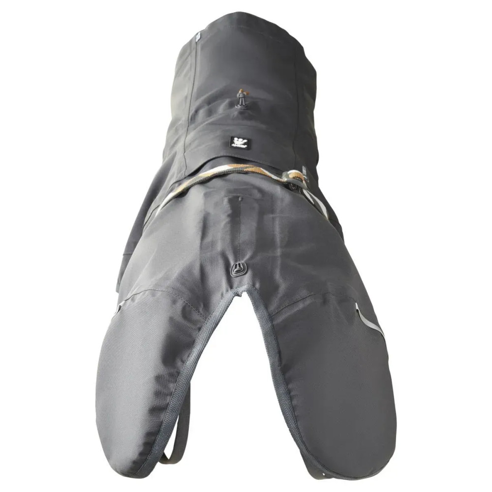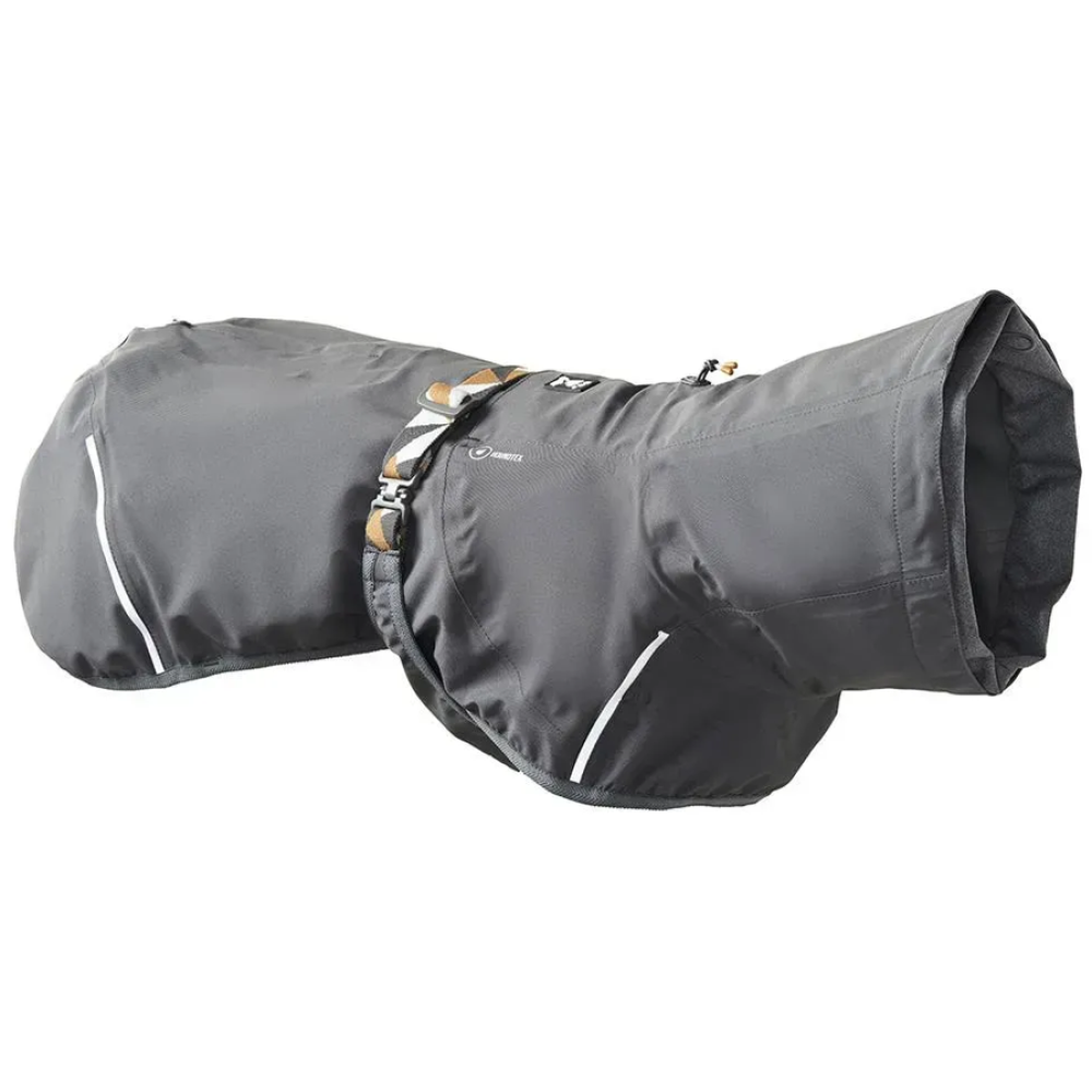 Hurtta Mudventure Coat ECO — лёгкий серый дождевик для собак без подкладки. Компактно складывается, не перегревает в тёплую погоду и защищает от дождя, ветра и грязи. Внутренняя сторона ламинирована мягкой водонепроницаемой мембраной, все швы полностью проклеены.
