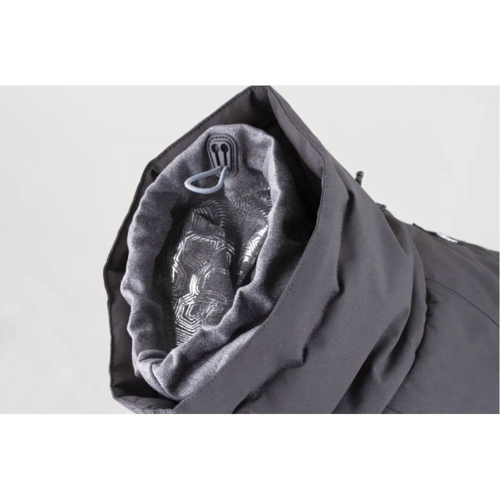 - Водонепроницаемость: Внешняя серая ткань имеет ламинированное покрытие (10 000 мм), которое защищает от мокрого снега и дождя, оставаясь при этом дышащим.