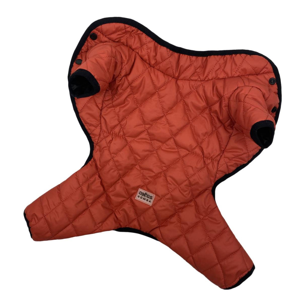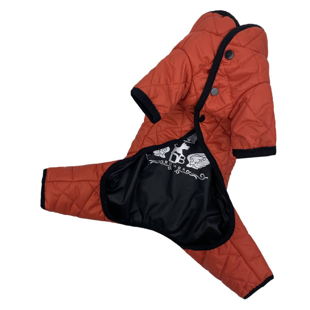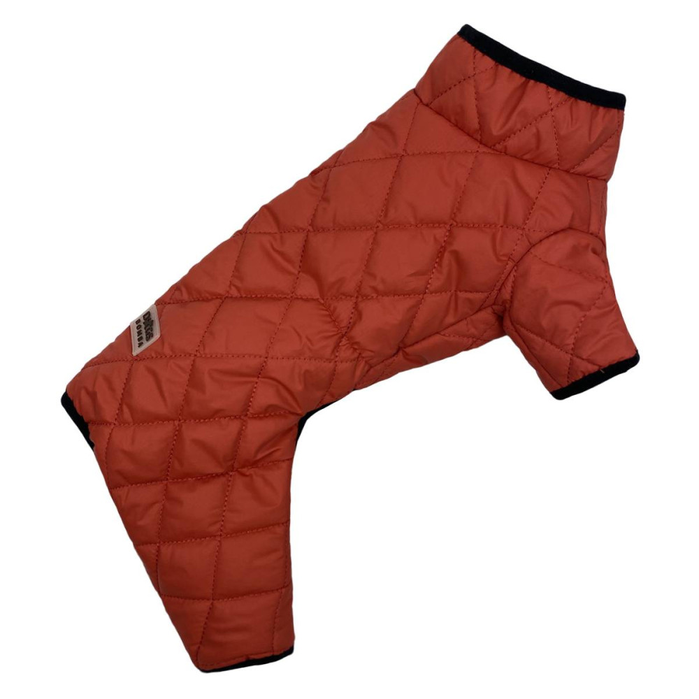 Основные характеристики зимнего стеганого комбинезона для собак красного цвета: