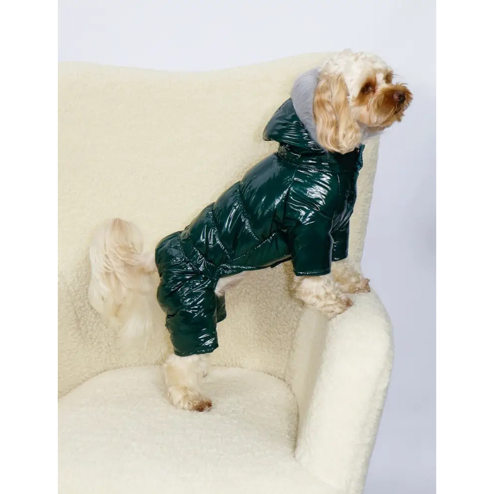 Зимний комбинезон для собак A-84 лакированный изумруд – это сочетание стиля, тепла и комфорта, идеально подходящее для прогулок в холодное время года.