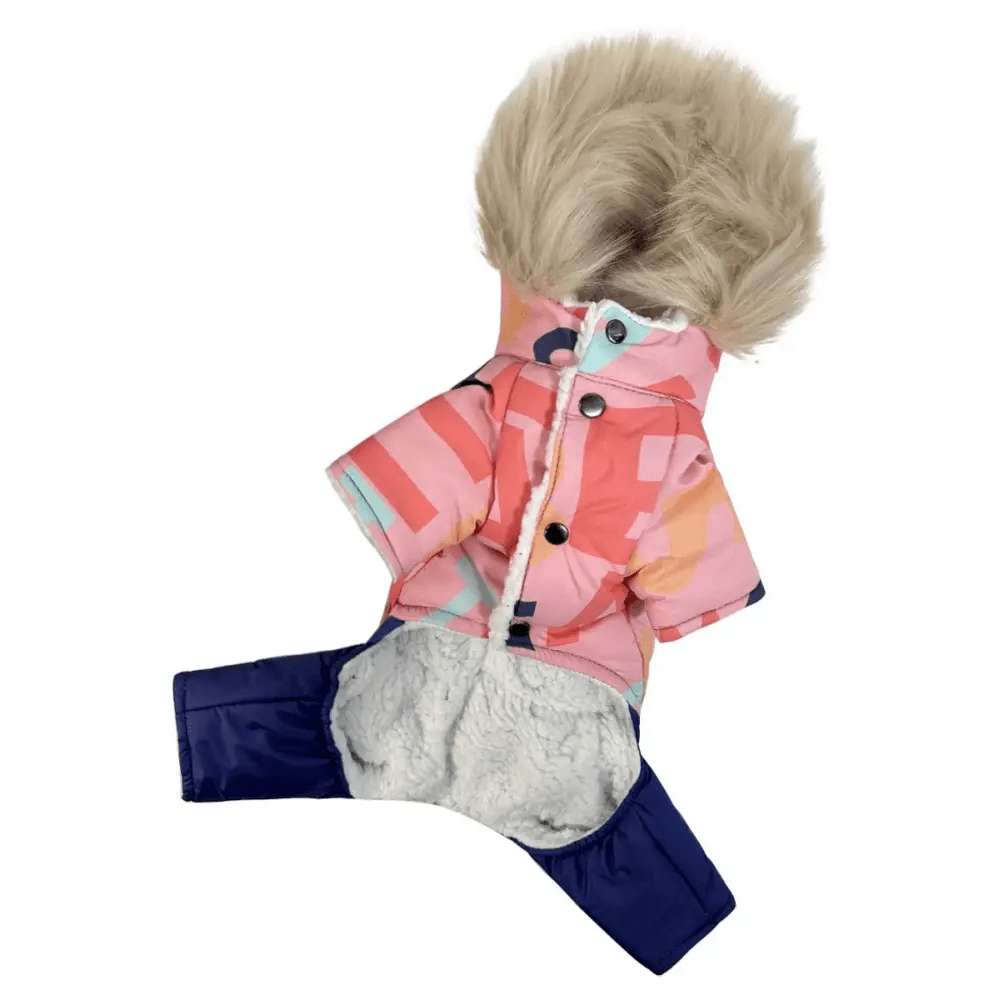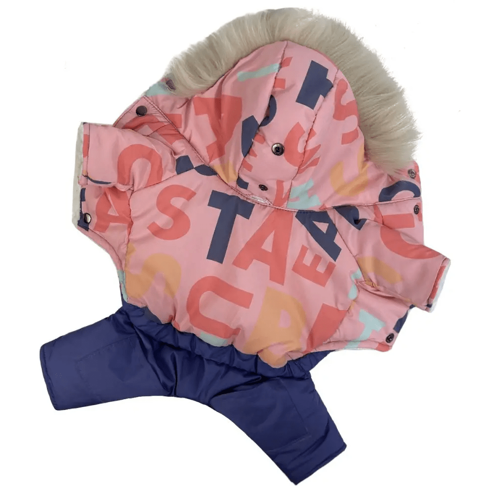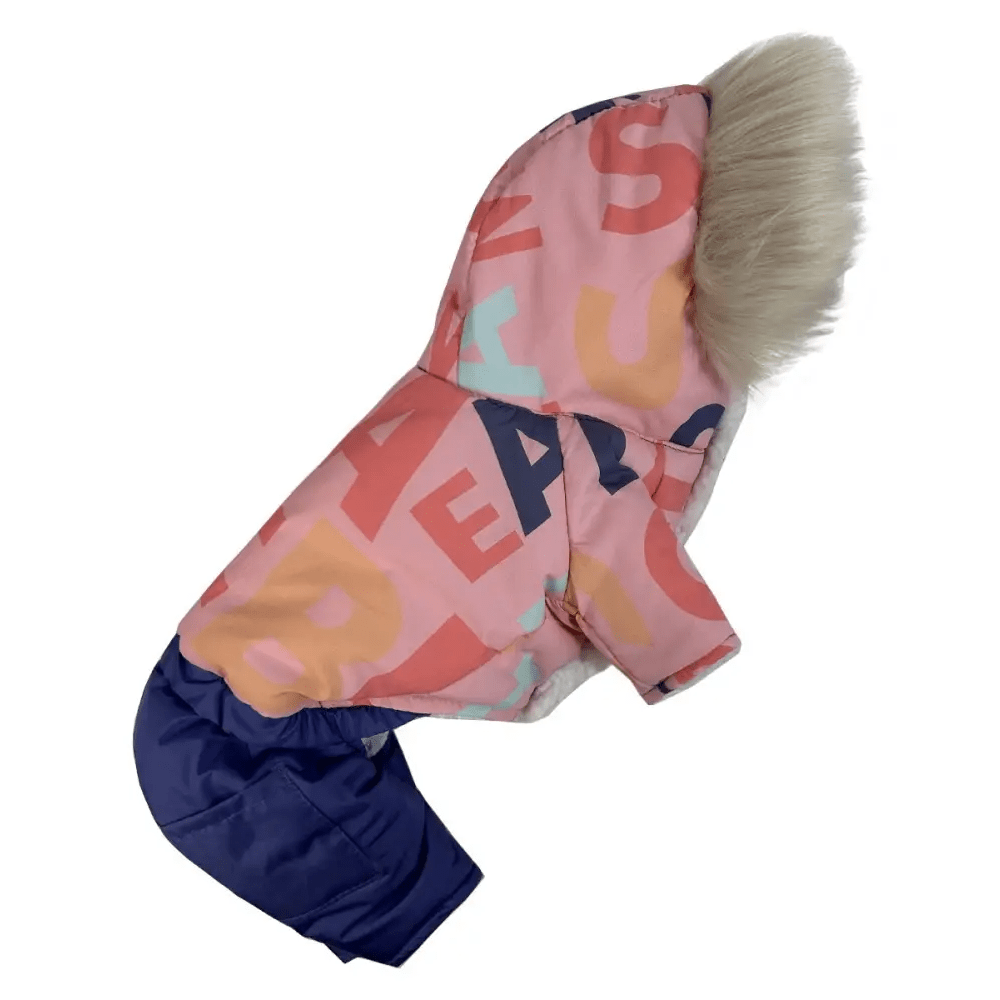 Зимний комбинезон для собак AM-31 с розовым принтом букв сочетает стильный дизайн и защиту от холода, делая зимние прогулки комфортными для вашего питомца. Выполненный из водоотталкивающей плащевки, этот комбинезон защищает от влаги, а синтепоновый наполнитель надёжно сохраняет тепло. Мягкая плюшевая подкладка из меха добавляет дополнительный уют и комфорт.