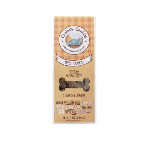 Натуральное печенье ручной работы из Португалии в форме косточек с более чем 30% свежеприготовленной говядины. Выпекается ежедневно небольшими партиями из ингредиентов human-grade качества. Натурально консервируется розмарином.
