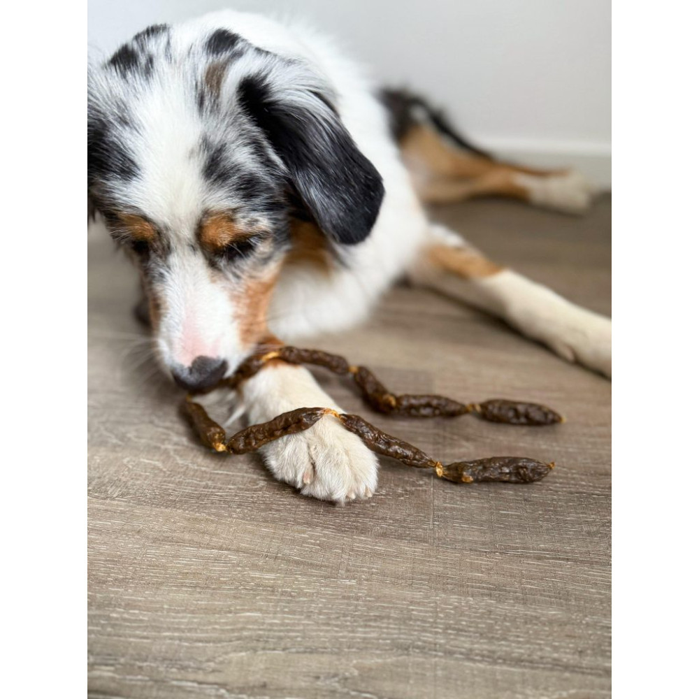 Колбаски подходят для собак всех пород и размеров. Жевательная текстура развлекает и помогает поддерживать здоровье зубов. Можно разломать на кусочки для дрессировки.