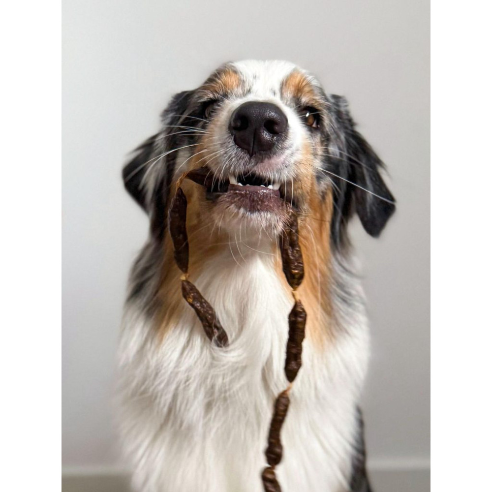 Cooka's Cookies Beef Salamis — натуральные сушёные колбаски из Португалии из 100% натурального мяса говядины. Выглядят как настоящие салями — вкусные колбаски с жевательной текстурой, которую собаки обожают.